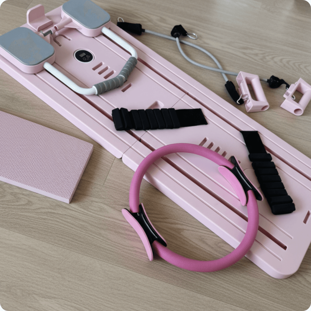 It works your core, thighs, glutes, chest, and arms. Great for full-body toning.